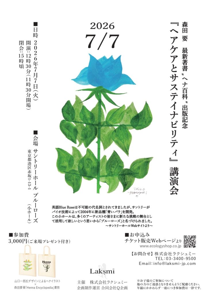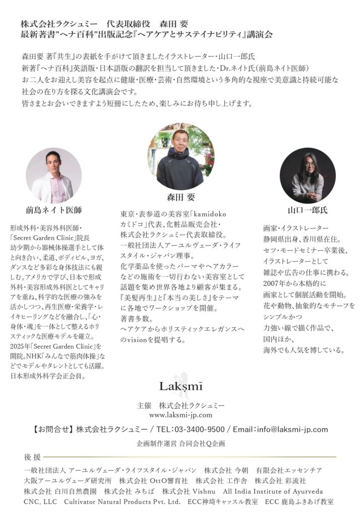 株式会社ラクシュミー 代表取締役 森田 要 最新著書”ヘナ百科”出版記念『ヘアケアとサステイナビリティ』講演会